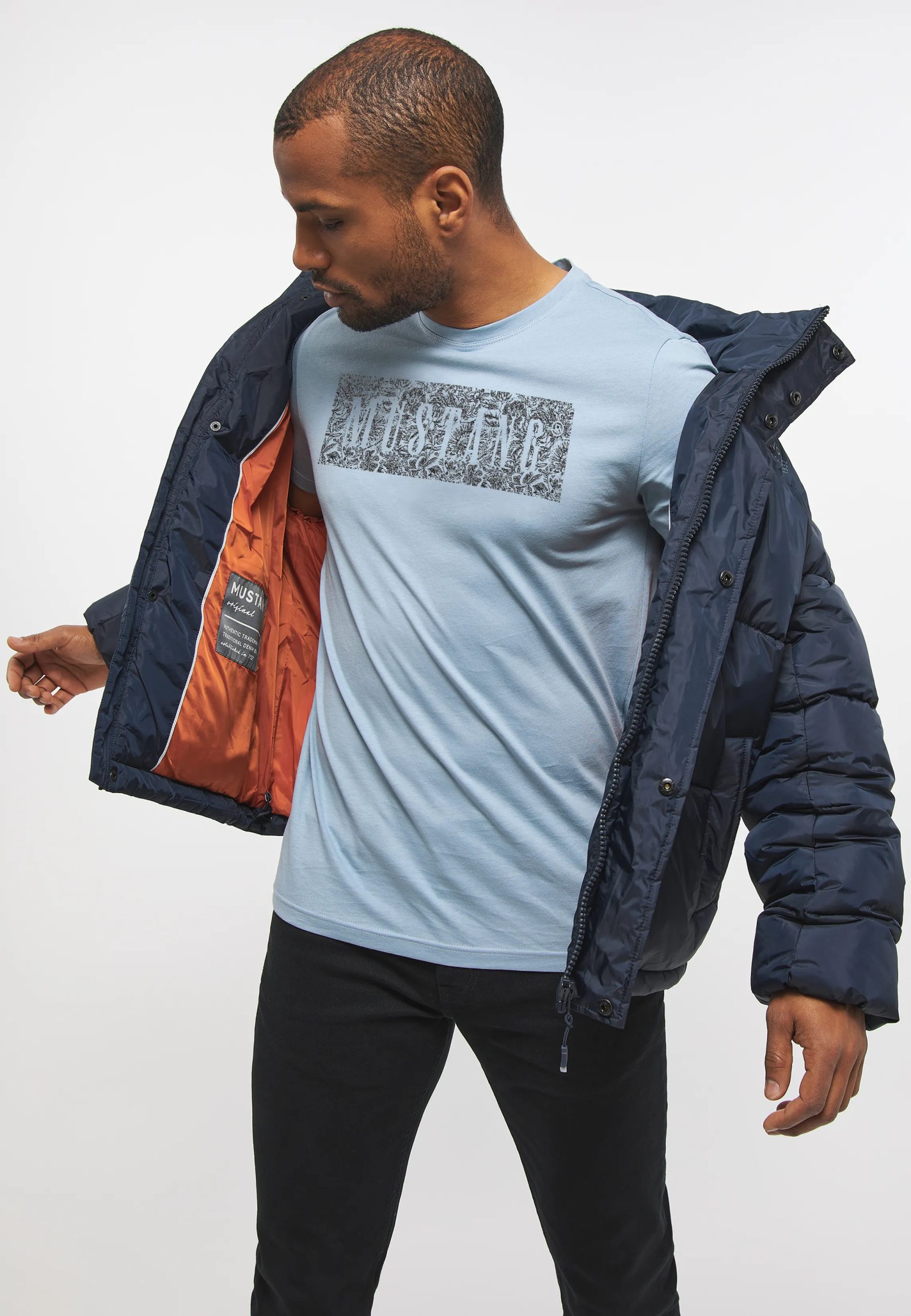 Утепленная мужская куртка Mustang темно синего цвета, изготовлена из технологичной болоньевой ткани последнего поколения . Подкладка из экологичного синтепона и теплый капюшон обеспечивают комфорт при нахождении на морозном воздухе. Застежка на молнию и кнопки. Манжеты снабжены скрытыми трикотажными резинками. Кулиска внизу обеспечивает регулировку обьема. Высококачественная фарнитура YKK c фирменным доготипом Куртка неприхотлива в уходе. Подойдет как химчистка, так и стирка в обычной стиральной машине при температуре не более +40С и деликатном режиме. Комфортная модель куртки отлично гармонирует с джинсами и ботинками различных цветов . Рекомендуется носить в прохладную и морозную погоду.